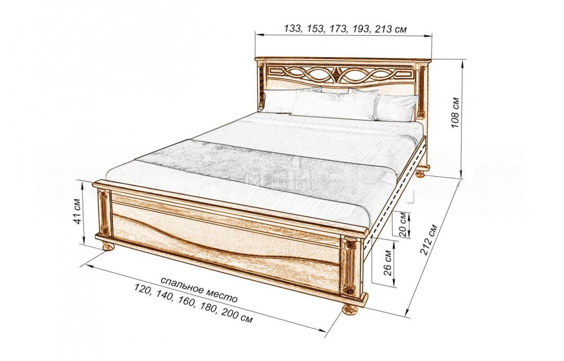 Оригинальная кровать Мелиса из берёзы отличается узорчатым изголовьем и низким изножьем. Модель, которую можно купить по выгодной цене в нашем интернет-магазине, оснащена аккуратными ножками для защиты напольного покрытия, а также обработана специальным лаком для увеличения срока службы изделия. Осуществляется доставка на дом по Тюмени и Тюменской области.| Размер | Цена | |